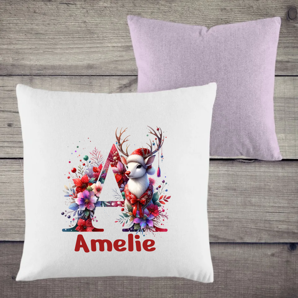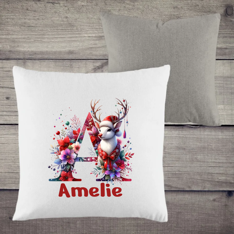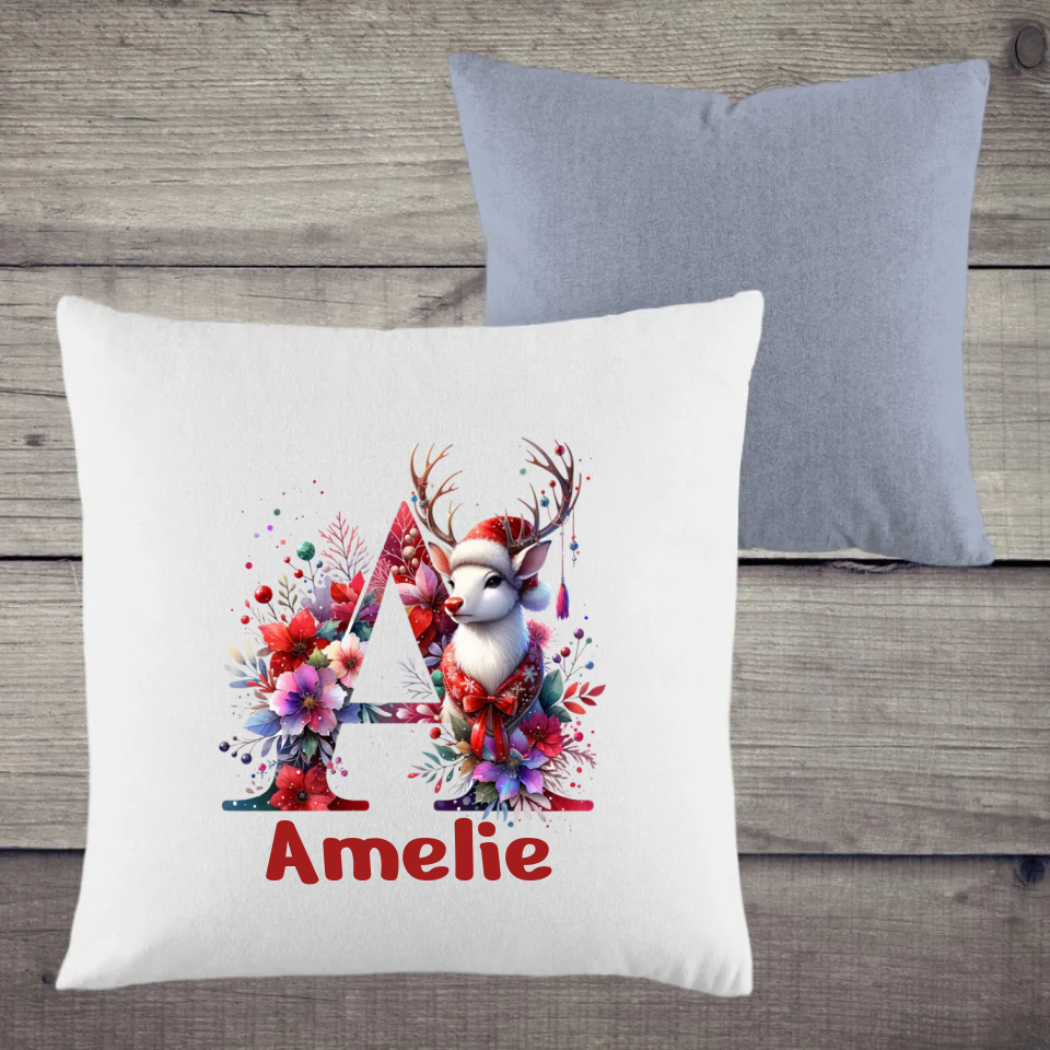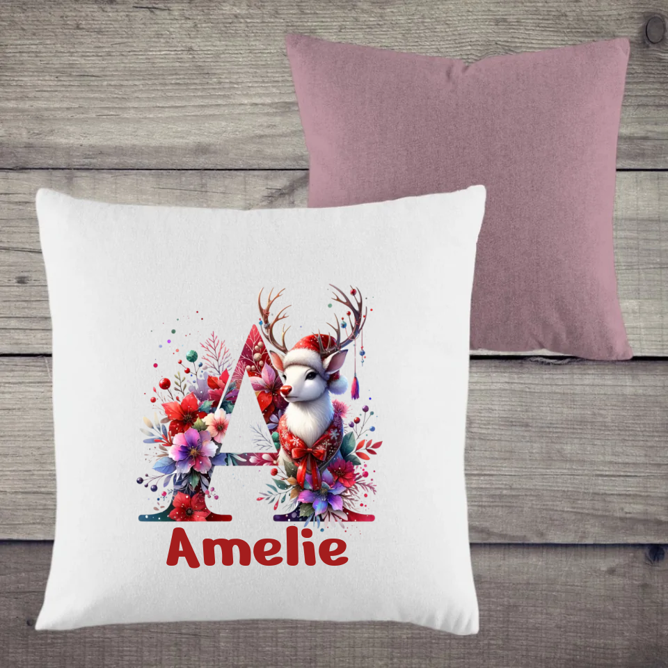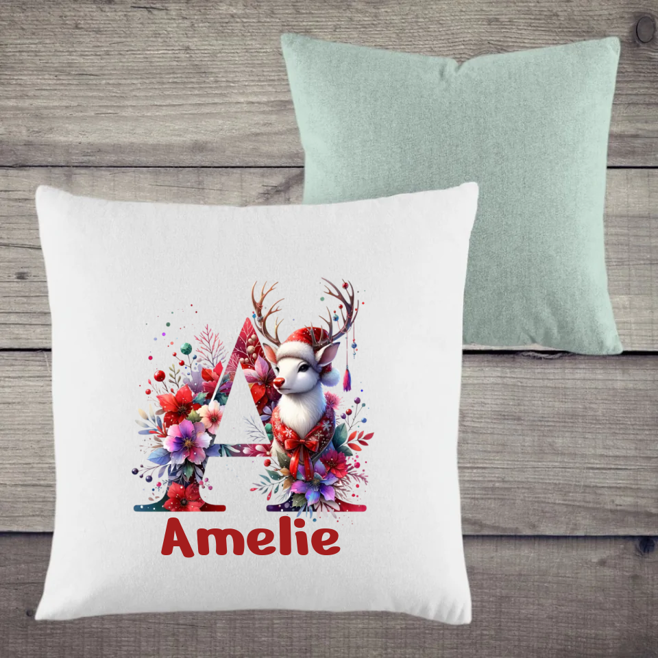 Für einen besonderen Touch sorgt unser Weihnachtsmotiv ABC: Wähle deinen Anfangsbuchstaben und optional deinen Namen, um dein Kissen individuell zu gestalten. 🎁🎅